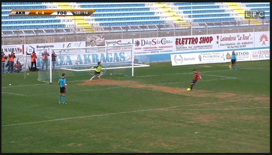 Il Foggia si è qualificato per le semifinale di Coppa Italia di Lega Pro battendo 4-5 l’Akragas ai calci di rigore. Gli uomini di De Zerbi, in campo con le riserve, sono dapprima passati in svantaggio con un gol in contropiede dei padroni di casa con Aveni. I rossoneri hanno stentato per tutta la prima frazione di gioco a trovare occasioni da rete nonostante il gran possesso di palla, e solo nel finale hanno impensierito la retroguardia agrigentina con Iemmello e Quinto. Nella ripresa il Foggia ha nuovamente schiacciato i padroni di casa nella loro metà campo ed è sembrato anche più determinato nel trovare il gol del pareggio che è arrivato proprio all’ultimo giro di lancette con Iemmello che da due metri ha depositato in rete un assist del giovane Lauriola. Nei due tempi supplementari l’arbitro ha mandato anzitempo negli spogliatoi prima Coletti e poi Riverola per doppia ammonizione, ma il Foggia ha tenuto duro anche in 9 ed ai calci di rigore è riuscito a vincere grazie alle reti di Vacca, Iemmello, Maza e Lauriola, con l’errore di Floriano, mentre l’Akgras ha commesso due errori dal dischetto prima con Aloi, che si è fatto parare la conclusione da Micale, e poi con il bulgaro Dyulgerov che ha tirato alto.