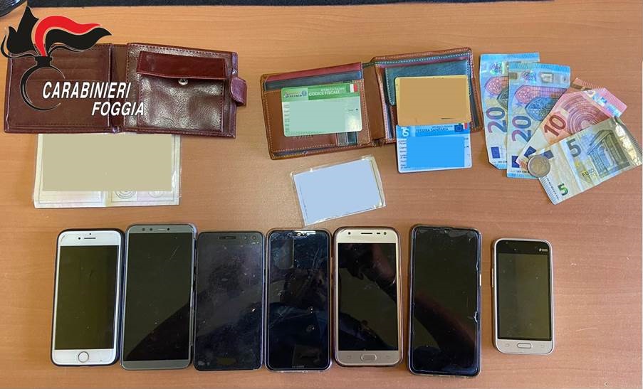 Nel corso di un servizio di perlustrazione, i militari di pronto intervento di San Severo ricevevano indicazione dalla Centrale Operativa che in località Torretta Antonacci, presso il Gran Ghetto di San Severo, ove era stata segnalata la presenza di uno straniero che era illecitamente in possesso di denaro ed effetti personali, verosimilmente asportati nei giorni precedenti ad alcuni occupanti del luogo. Immediatamente, la pattuglia si recava sul posto e, mentre giungeva all’altezza dell’ingresso del Ghetto, notava un giovane di colore che, corrispondente alla dettagliata descrizione fornita dai richiedenti, alla loro vista si dava a precipitosa fuga, tentando di dileguarsi per le campagne limitrofe. Dopo breve inseguimento, il ragazzo veniva bloccato e, da una perquisizione sul posto, in uno zainetto che lo stesso portava stretto a se, venivano rinvenuti cinque telefoni cellulari, due portafogli con all’interno la documentazione identificativa e personale di altri extracomunitari e la somma contante di circa 100,00 euro.
