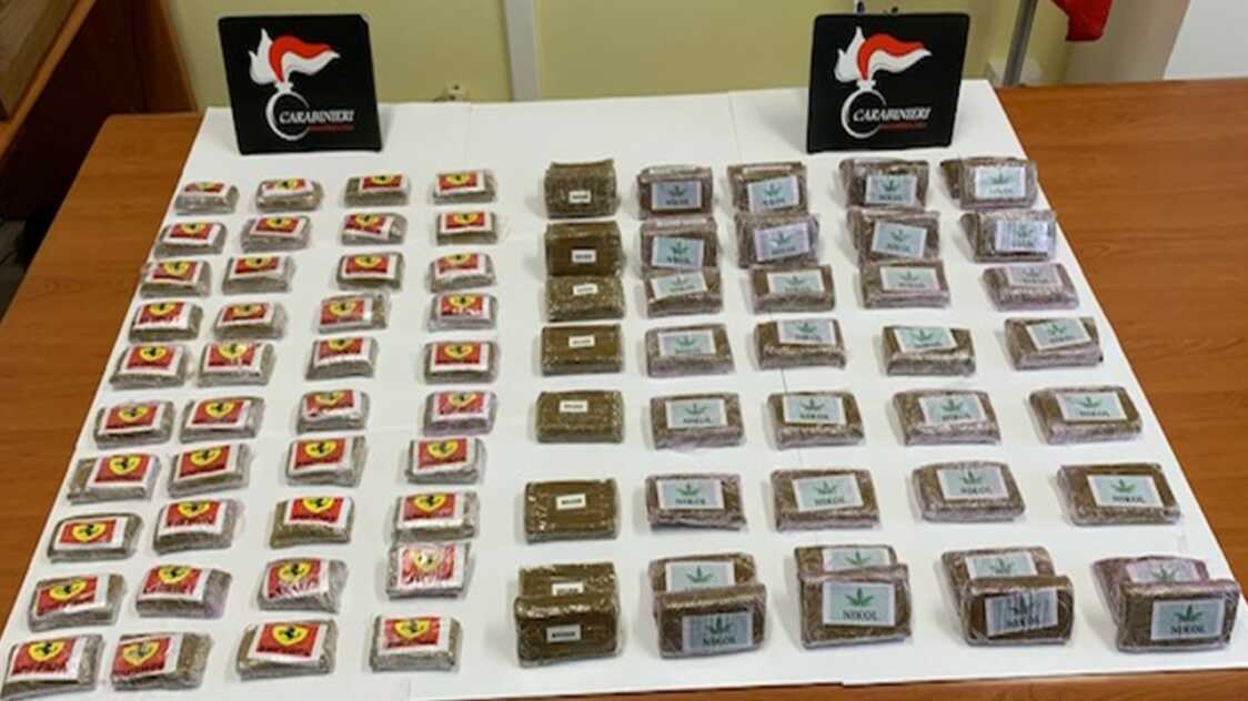 Con enorme stupore i militari, intervenuti sul posto, scoprivano al terzo piano di un’abitazione, posta nel centro cittadino, che un soggetto incensurato, Z.F. custodiva, all’interno di un pensile posto nel ripostiglio, circa 7 chilogrammi di hashish divise in panette sigillate singolarmente da cellophane trasparente e chiuse, a loro volta, in blocchi da cinque pezzi ciascuno con scotch da imballaggio. Su ogni confezione veniva riportata la diversa tipologia: Ferrari, Nikol e Skunk.