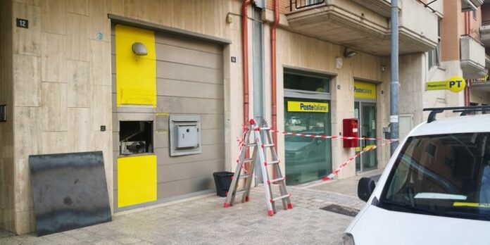 Un ordigno rudimentale è stato piazzato e fatto esplodere la scorsa notte nello sportello bancomat dell’ufficio postale in via Anna Magnani a Lucera (Foggia). Lo sportello automatico è stato danneggiato e non è ancora chiaro se i malviventi siano riusciti a sottrarre il denaro contenuto.