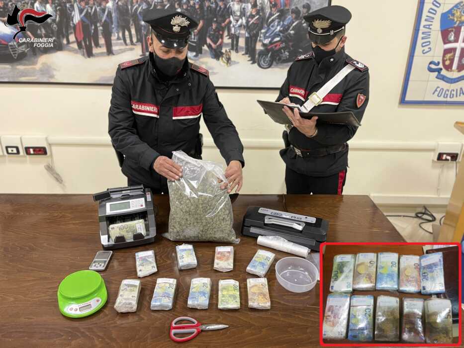 Continua è l’attività dei carabinieri della Compagnia di Foggia finalizzata a contrastare il fenomeno della detenzione ai fini di spaccio di sostanze stupefacenti. Questa volta a finire nella “rete” dei controlli d’iniziativa da parte dei carabinieri del Nucleo Operativo e Radiomobile, è stato un 30enne originario del capoluogo dauno, già noto alle Forze dell’Ordine, che, nel procedere a velocità sconsiderata lungo la SS16 in direzione Cerignola a bordo della sua Alfa Romeo Giulietta, ha insospettito non poco i militari dell’Arma che, dopo aver raggiunto il veicolo, hanno proceduto al controllo del conducente e del mezzo, rinvenendo 70.000 euro in banconote di vario taglio nel vano airbag anteriore destro. Il controllo è stato esteso anche all’abitazione dell’uomo, dove è stato rinvenuto 1 kg di sostanza stupefacente del tipo marijuana, vario materiale utilizzato per il confezionamento e il peso della suddetta sostanza e una macchina elettronica per contare le banconote, tutto sottoposto a sequestro penale.