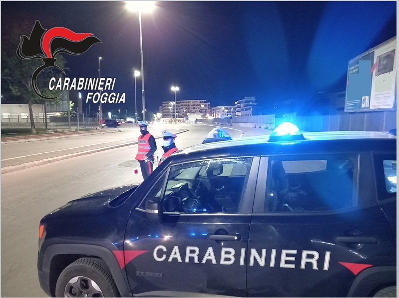 Sempre i Carabinieri in Cerignola traevano in arresto per evasione un 27 enne del posto che, sottoposto agli arresti domiciliari, nel corso dei controlli veniva sorpreso percorrere a piedi le vie del centro.