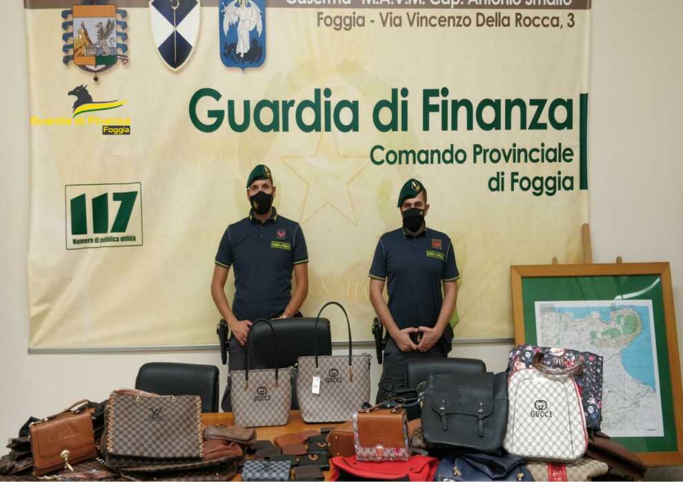 Il piano di intervento, tuttora in essere, che vede impegnati i finanzieri di tutti i Reparti del Corpo della Provincia, soprattutto nelle aree a vocazione turistica, in prossimità delle stazioni ferroviarie nonché presso i mercati settimanali, si è concretizzato con l’esecuzione di 9 interventi, conclusi con il sequestro di circa 4.400 articoli contraffatti o pericolosi per la sicurezza e la salute pubblica e con la denuncia di n. 5 soggetti alla Procura della Repubblica di Foggia, che dirige e coordina gli approfondimenti investigativi scaturiti per reati connessi alla commercializzazione di prodotti – principalmente capi di pelletteria, di abbigliamento, calzature sportive di noti marchi, occhiali e bigiotteria – recanti marchi registrati contraffatti, la fallace indicazione di “made in Italy” o risultati potenzialmente pericolosi per la salute dei consumatori.