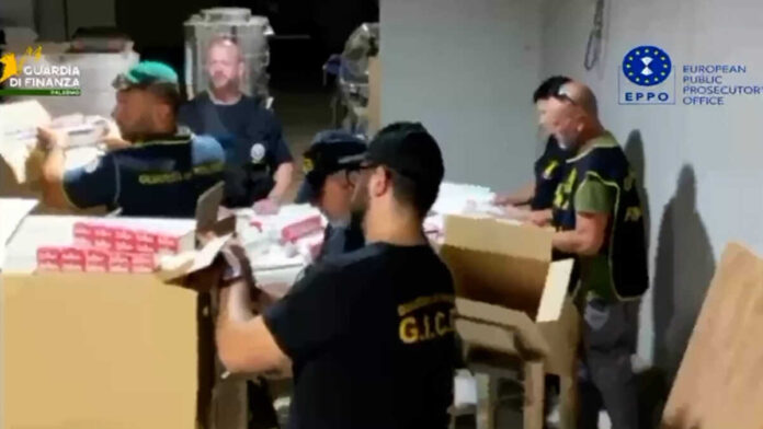 Un imponente opificio industriale per la fabbricazione di sigarette, in grado di produrne due milioni al giorno. E’ quello scoperto e sequestrato a Stornara, nel Foggiano, dalla Guardia di Finanza di Palermo, su delega della Procura Europea. I militari hanno condotto una vasta operazione a contrasto dell’illecita produzione di tabacchi lavorati di contrabbando. Le attività, che hanno coinvolto anche i militari delle Fiamme Gialle di Foggia e di Bari, hanno consentito di scoprire un autentico polo logistico situato nel piccolo centro dei Cinque Reali Siti. Un impianto di un valore superiore al milione e 300 mila euro, realizzato secondo i più avanzati standard tecnologici. All’interno dello stabilimento, strutturato su due piani e insistente su un’area di 3 mila metri quadri, sono stati trovati 45 bancali di sigarette per complessive 13 tonnellate, 165 sacche contenenti tabacco triturato, oltre a materiali per il confezionamento dei pacchetti con i loghi di rinomate case di produzione.