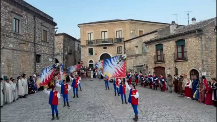 Tornare ad 800 anni fa, ai tempi in cui l’ordine monastico proveniente dalla Spagna arrivò ad Orsara di Puglia, borgo dei monti della provincia di Foggia, per prendere possesso dell’abbazia di Sant’Angelo e dei suoi estesi possedimenti. Quella vicenda storica è stata rievocata nel tradizionale Corteo Storico dei cavalieri e monaci di Calatrava: 200 figuranti hanno caratterizzato l’imponente e spettacolare sfilata. Storie e vesti di monaci guerrieri, antichi cavalieri, tra la luce della Bibbia e il bagliore metallico delle armi, hanno fatto rivivere quei tempi. In corteo hanno sfilato monaci, cavalieri, dame e il cosiddetto Gran Maestro con costumi d’epoca, rievocando l’ingresso dell’ordine cavalleresco nel centro abitato di Orsara di Puglia e il momento in cui l’infante Juan di Aragona divenne proprietario dell’Abbazia di Sant’Angelo, sotto l’influenza religiosa e politica spagnola e lungo le strade che portavano a Santiago de Compostela, Roma, Monte Sant’Angelo e Gerusalemme. Il clou della presenza di monaci spagnoli sul territorio orsarese si raggiunse nel 1229, con i monaci e cavalieri di Calatrava, i quali ressero l’abbazia per circa 80 anni avendo il compito di vigilare sul territorio e ridare vigore religioso ed economico alla stessa.
